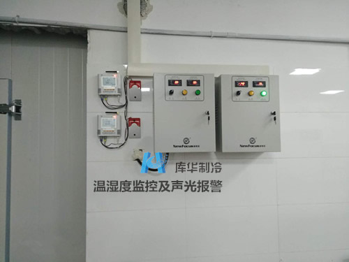 4、根據(jù)客戶要對(duì)庫(kù)房溫度進(jìn)行全方位監(jiān)控和異常報(bào)警的需求,庫(kù)華工程師在雙溫冷庫(kù)的電氣系統(tǒng)設(shè)備配置上,選用高精準(zhǔn)度的溫濕度記錄儀及聲光報(bào)警裝置,這樣庫(kù)房管理人員可以隨時(shí)監(jiān)控庫(kù)房?jī)?nèi)的溫度。