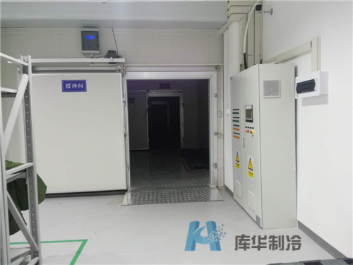 在庫(kù)體保溫板的選擇上,庫(kù)華制冷王工根據(jù)不同庫(kù)房溫度的要求針對(duì)性選用了不同厚度的聚氨酯雙面彩鋼板。例如,其中-25℃庫(kù)溫要求的庫(kù)房配備了厚度為150mm的聚氨酯雙面彩鋼板,以更好地保障庫(kù)內(nèi)低溫穩(wěn)定,避免庫(kù)溫波動(dòng)對(duì)所儲(chǔ)藏醫(yī)療器械等醫(yī)藥產(chǎn)品的功效及安全影響。另外,地面在保障優(yōu)良隔熱性能的基礎(chǔ)上增加鋪設(shè)一層美觀的壓花鋁板,這樣一來(lái)就極大地方便了冷庫(kù)人員的醫(yī)療器械產(chǎn)品等進(jìn)出庫(kù)管理,也延長(zhǎng)了醫(yī)藥冷庫(kù)的使用壽命。